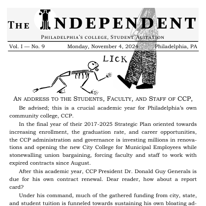 The Independent is a publication founded by students at the Community College of Philadelphia. Free from college funding or administrative oversight, we are dedicated to platforming dissenting student voices and calling out institutional malarkey.