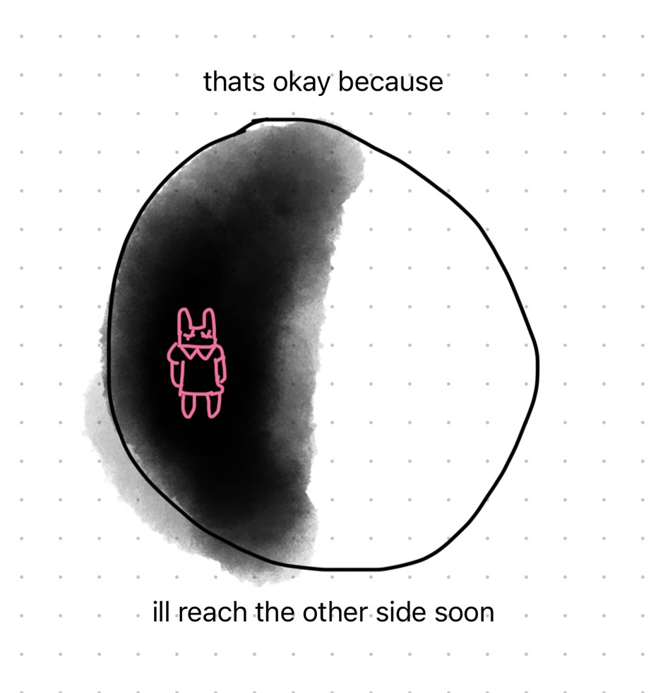 we are slower to place these things as a duality, a second half to the whole circle, one being that flows equally as the “good” or the sun shining. we are quicker to turn away once the moon rises; quicker to check the weather app and pray it is a shining day tomorrow. quicker to place ourselves on the one side of the circle and look forward to when we get to the other instead of accepting where we are in the moment.